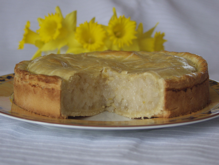 For our cooking session, Annette made Green Borshch with Sorrel, and Mlyntsi (Griddlecakes) with two toppings: savory with bell peppers, and sweet with sour cream, jam and strawberries. Luckily she let me nibble on a couple of rejected oddly shaped ones because I would not have made it through the photo shoot while the wonderful smell of the soup was filling the kitchen. For dessert I made Lemon-Rice Cake, based on a recipe from an 18th-century cookbook classic by a pastor’s wife from the Bavarian city of Augsburg.