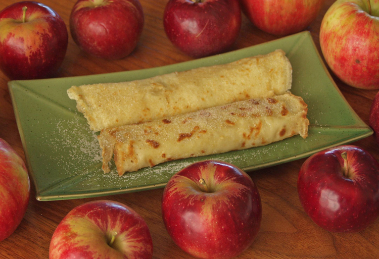The step of caramelizing the apples can be skipped but I find the softer texture of the apple slices worth the extra effort. If making plain pancakes to fill and roll up, use 1/3 cup of the batter for each pancake.