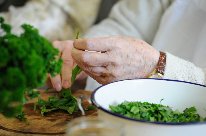 The book certainly had me thinking a lot about food and ageing. After a life of passionate cooking, how would I feel in my old age if a plate of food – even if it was tasty – was put in front of me every day, without me being involved in the preparation at all? If I am still physically and mentally able to, I imagine that I would want to at least help peeling potatoes or shelling peas, just like my grandmother in my mother’s kitchen many years ago, and just like my mother on the patio when she visited us from Germany last summer.