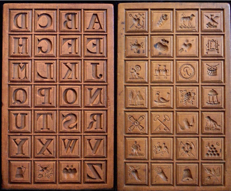 Each of those handed-down molds is more beautiful and detailed than the other. Most of them are carved from fruit trees such as apple or pear. Some of the molds, like the Alphabet Board dating back to the 1800s, are carved on both sides. This type of board was a learning tool for young children.