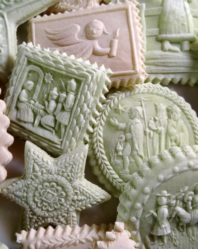 From Ken’s website I stumbled upon a Facebook group devoted entirely to Springerle making, where members show off their stunning edible pieces of art and discuss trouble-shooting. Springerle are not always white, they can be made in many different colors and flavors.