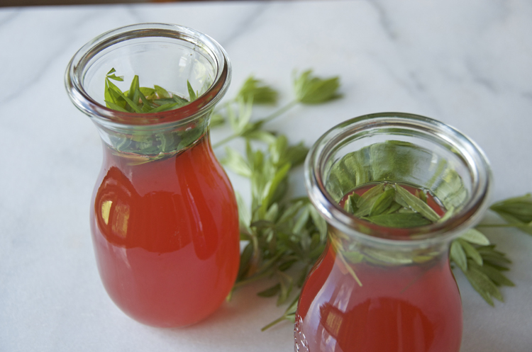 Berliner Weisse comes in red (with raspberry syrup) or green (with sweet woodruff syrup). I love both and make my own syrups from homegrown raspberries and woodruff. Note however that woodruff is almost colorless. I do not put any food coloring in my sweet woodruff syrup so my Berliner Weisse mit Schuss (Berliner Weisse with a shot) is not the same bright green color that you get when you order the drink in Germany.