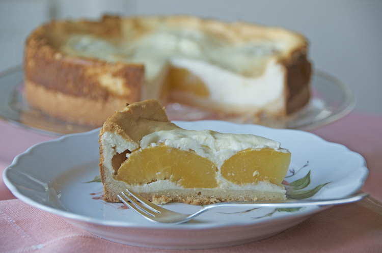German Cheesecake with Peaches (Käsekuchen mit Pfirsichen)
