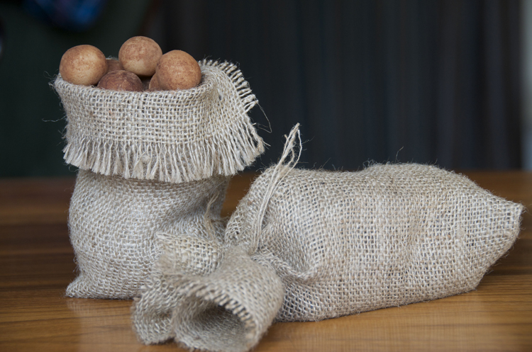 4. Store the marzipan potatoes in an airtight container with wax or parchment paper between the layers, or place each one in a candy cup.